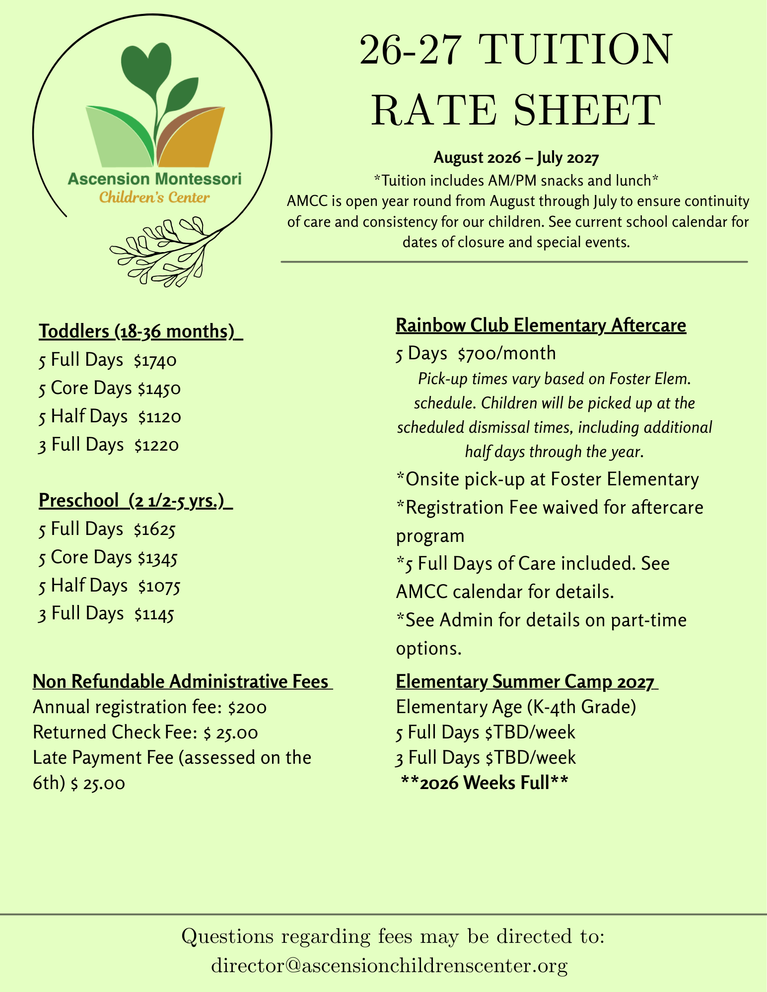 We will soon be accepting enrollment for the 26/27 school year. Priority enrollment, for currently enrolled families, will run through Friday, March 20th. After this time period, new families may confirm enrollment based on availability.
